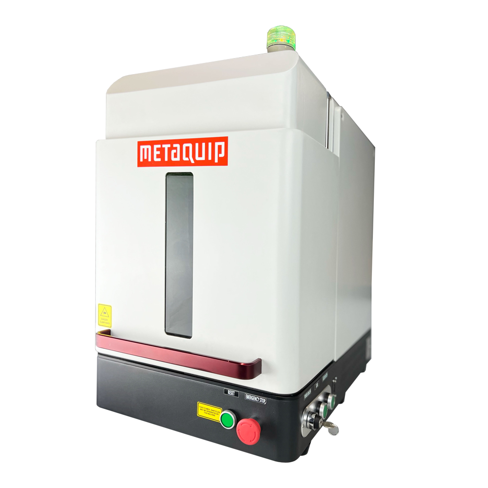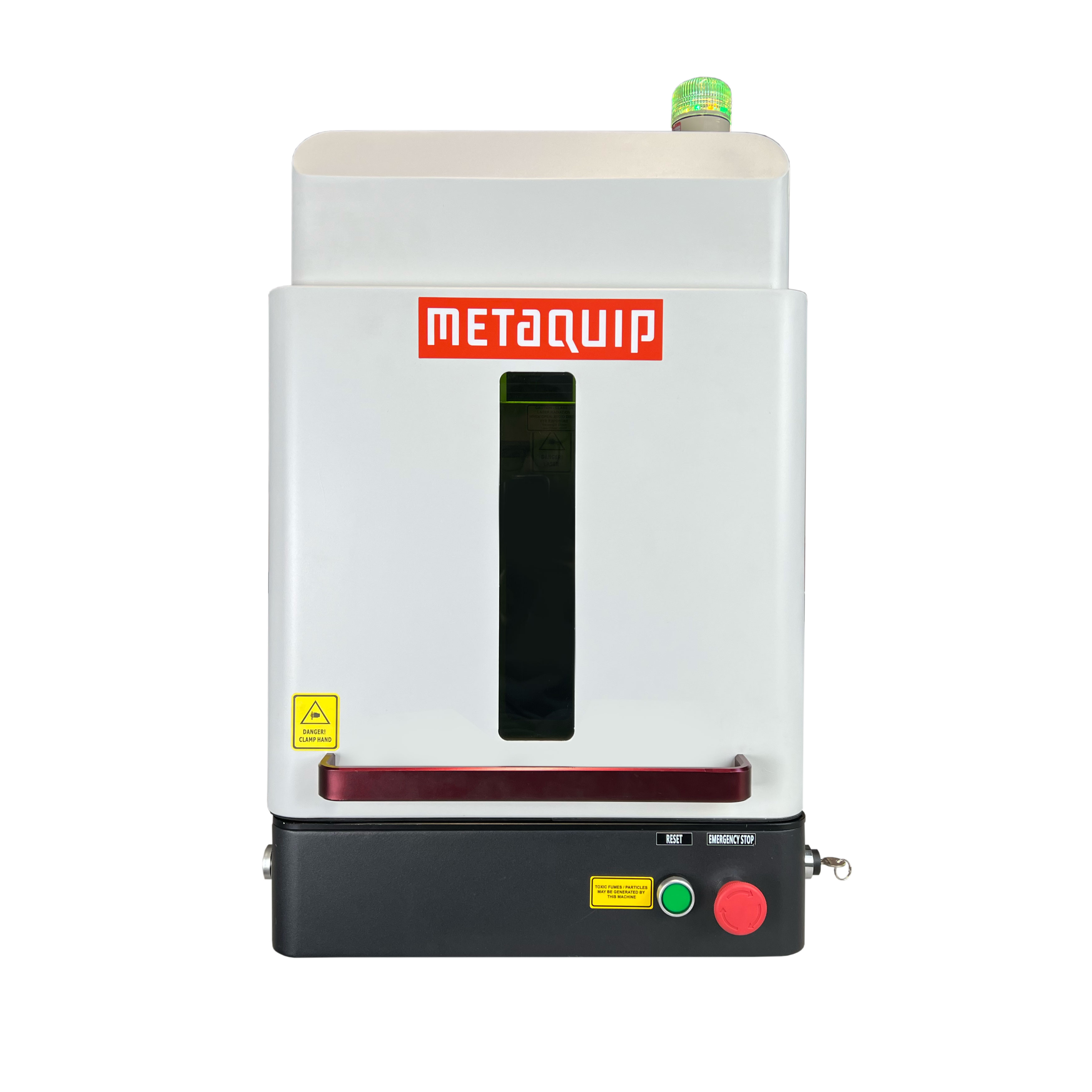 MetaQuip liefert die geschlossenen Desktop-Faserlasergravurmaschinen mit einer Laserleistung von 20 Watt (30 Watt optional). Diese Faserlaser-Graviermaschine wird mit zwei Linsen geliefert, eine für eine Arbeitsfläche von 100 x 100 mm und eine für eine Arbeitsfläche von 65 x 65 mm. Bei letzterer Linse erhöht sich die Laserintensität pro Flächeneinheit, sodass Sie tiefer gravieren können.