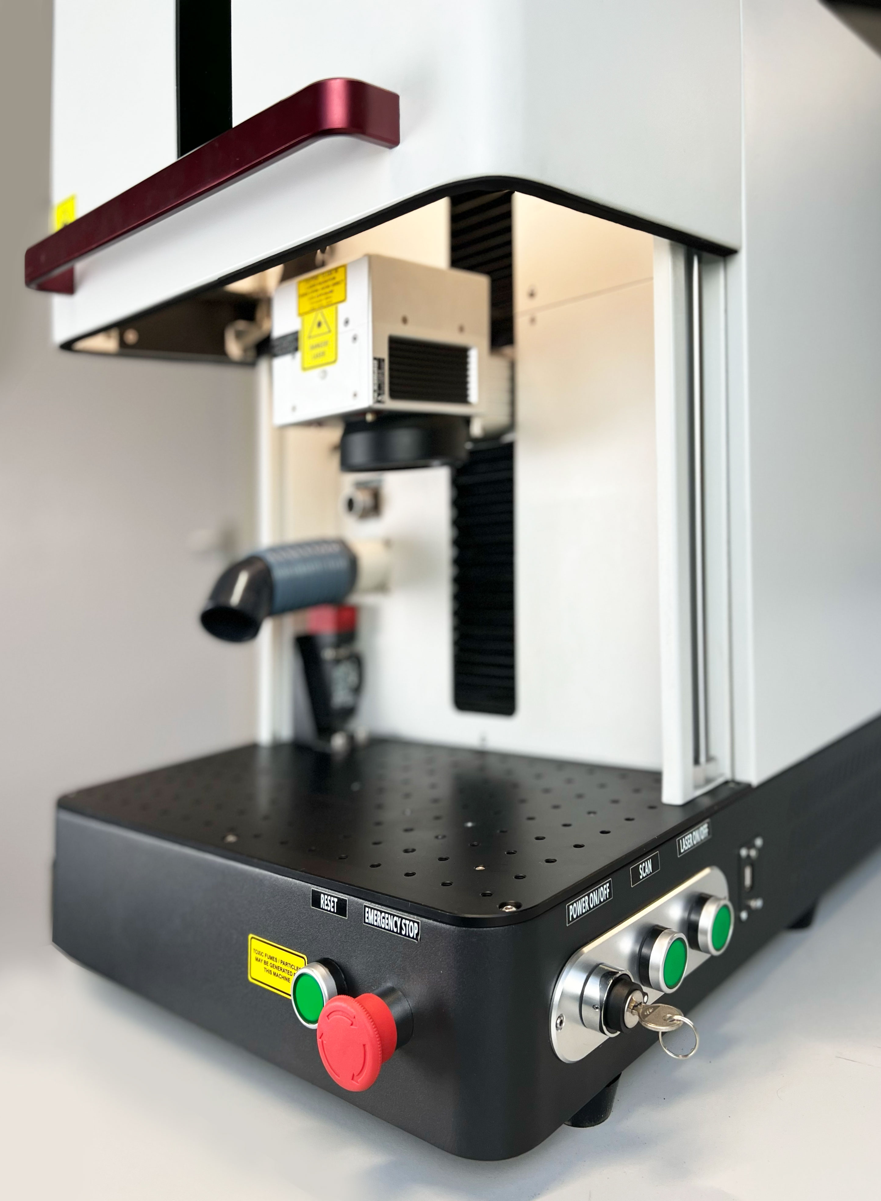 Mit der Desktop-Faserlaser-Graviermaschine von MetaQuip können Sie Schmuck und kleinere Gegenstände perfekt lasergravieren und markieren. Dies ist eine geschlossene Maschine, die nur aktiv ist, wenn die Tür vollständig geschlossen ist. Dies ermöglicht ein sicheres Arbeiten mit dieser Maschine ohne weitere Laserschutzmaßnahmen. Die MetaQuip Desktop-Faserlasergravurmaschine hat eine kompakte Größe, sodass sie leicht auf einem Schreibtisch platziert werden kann. Ideal zum Lasergravieren und Markieren von Schmuck und anderen kleineren Metallgegenständen.