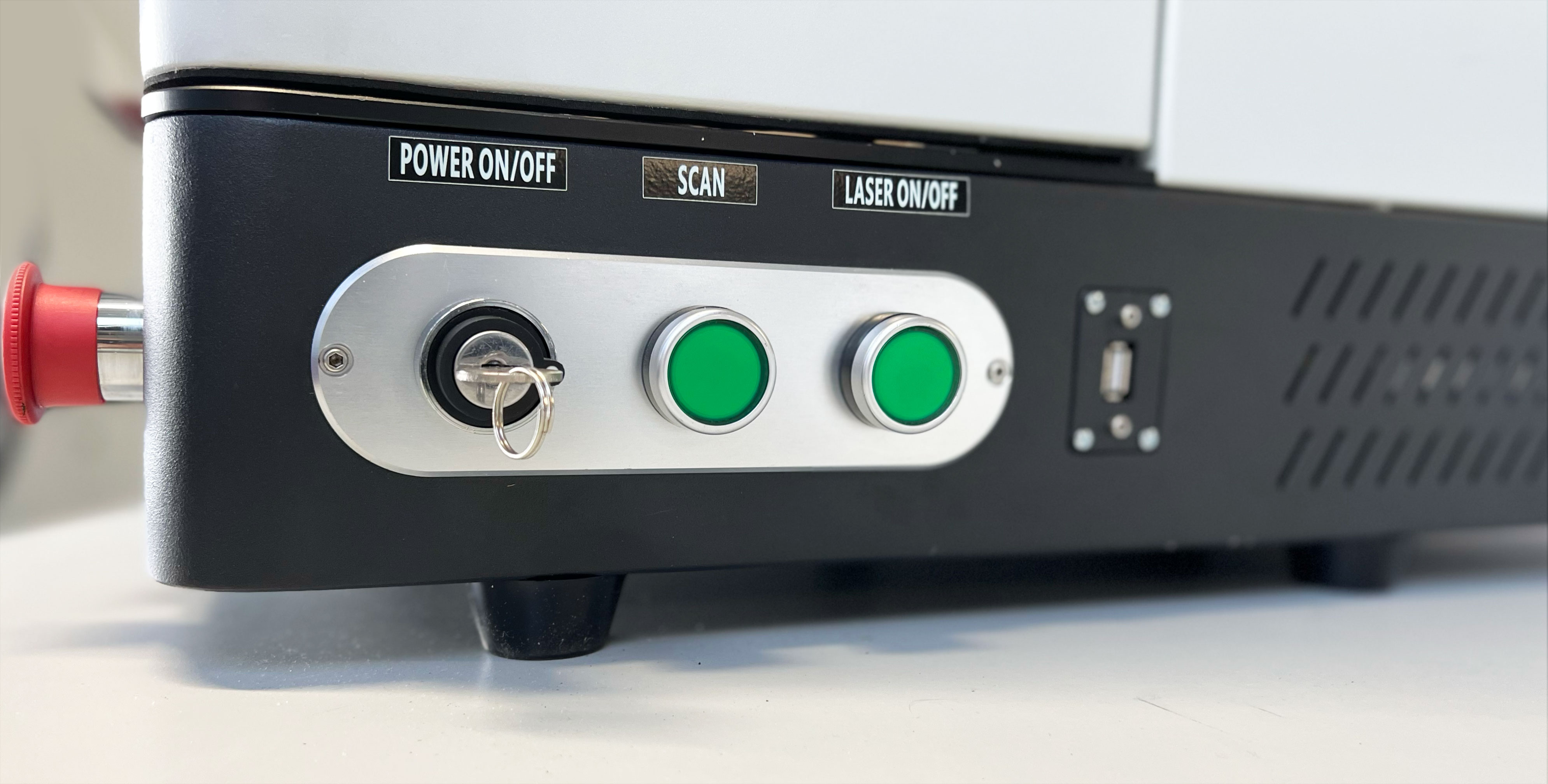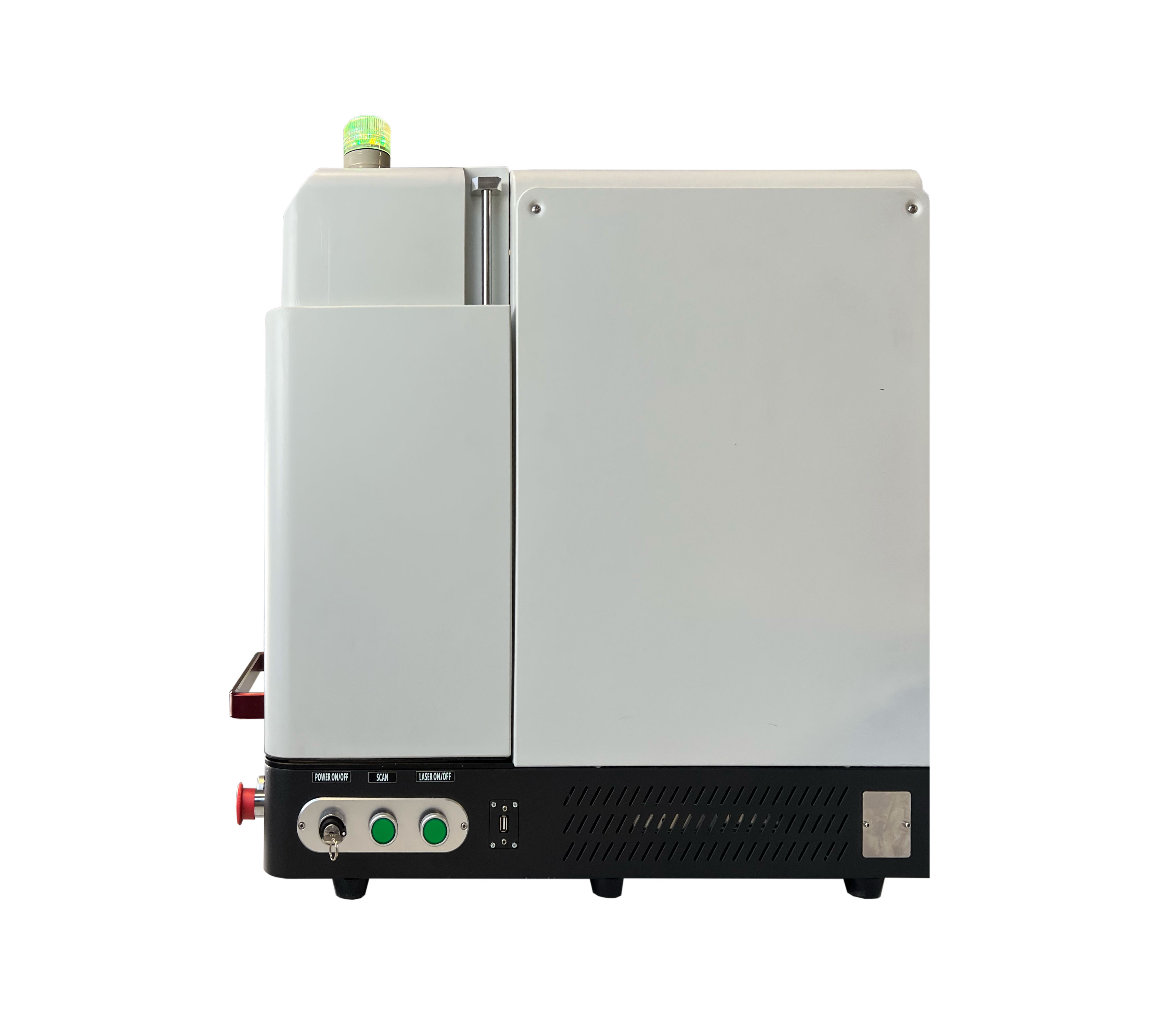 Im Laserkopf befindet sich ein XY-Spiegel, der die Oberfläche mit hoher Frequenz abtastet. Dieser XY-Spiegel ist vollständig von der Außenwelt abgeschirmt und das einzige bewegliche Teil dieser Maschine. Dies garantiert die hohe Zuverlässigkeit und lange Lebensdauer der Maschine.